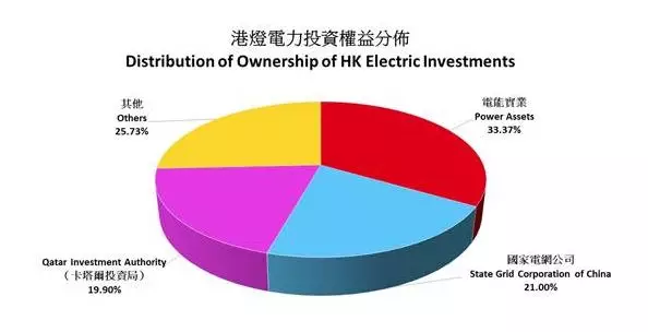 港燈電力投資之三大主要股東包括持有33.37%權益之電能實業、持有21%權益之國家電網公司,及持有19.9%權益之Qatar Investment Authority (卡塔爾投資局)。