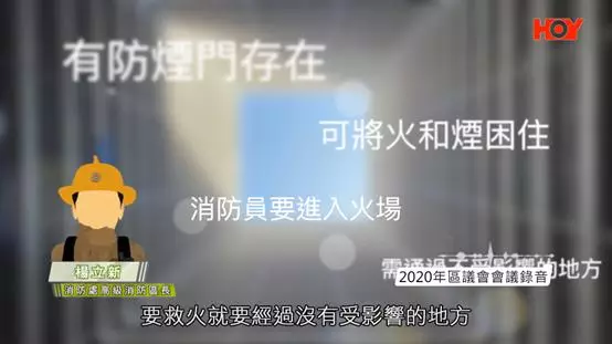 消防處高級消防區長楊立新表示如果有防煙門存在,將火和煙困在發生火警的地方,大廈其他地方就可不受影響。(《一線搜查》影片截圖)