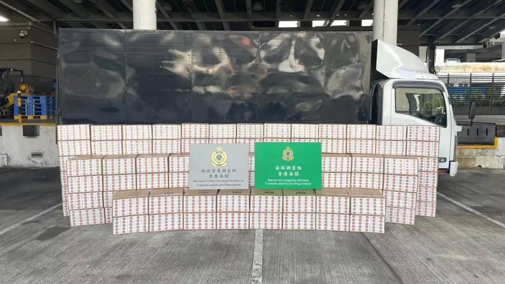 檢獲的懷疑私煙和被扣查的懷疑涉案貨車。政府新聞處圖片