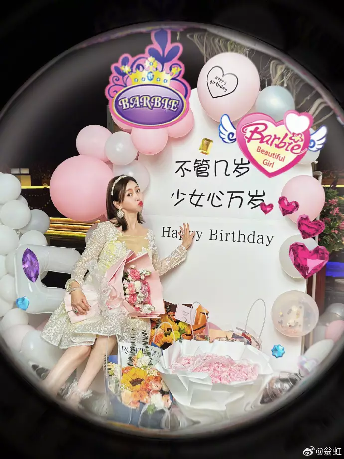 90年代影視紅星翁虹於9月17日日迎來55歲生日,並在社交平台貼出生日派對的照片,留言:「我的心裡永遠住着一顆粉紅少女心!做一個簡單又有趣可愛的女人吧!」直接道出保持青春的秘訣!相中可見派對現場以粉紅色為主,背景板更寫上「不管幾歲,少女心萬歲」,非常合題!