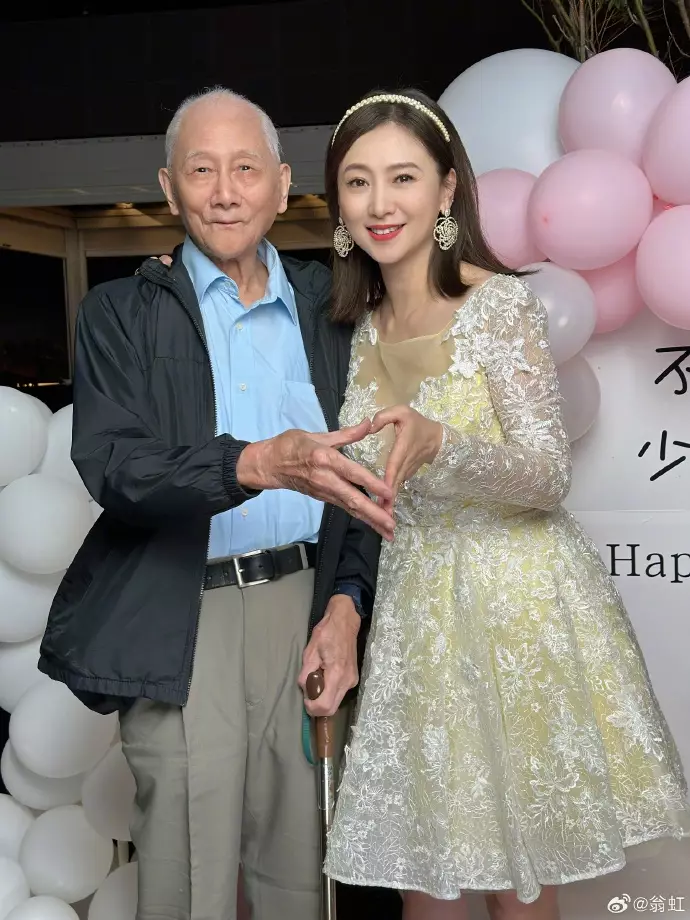翁虹96歲的爸爸亦有到現場為女兒慶生,二人溫馨合照,更合力擺出心型手勢,可見父女關係親密。翁虹分享﹕「特別開心今年的生日有我可愛的老爸及姊妹親戚朋友們的參與,分外有意義!」