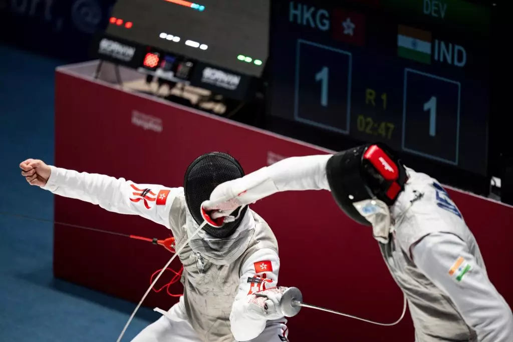 亞運劍擊男子花劍項目展開,東京奧運金牌得主,港隊代表張家朗及隊友蔡俊彥均晉級16強。