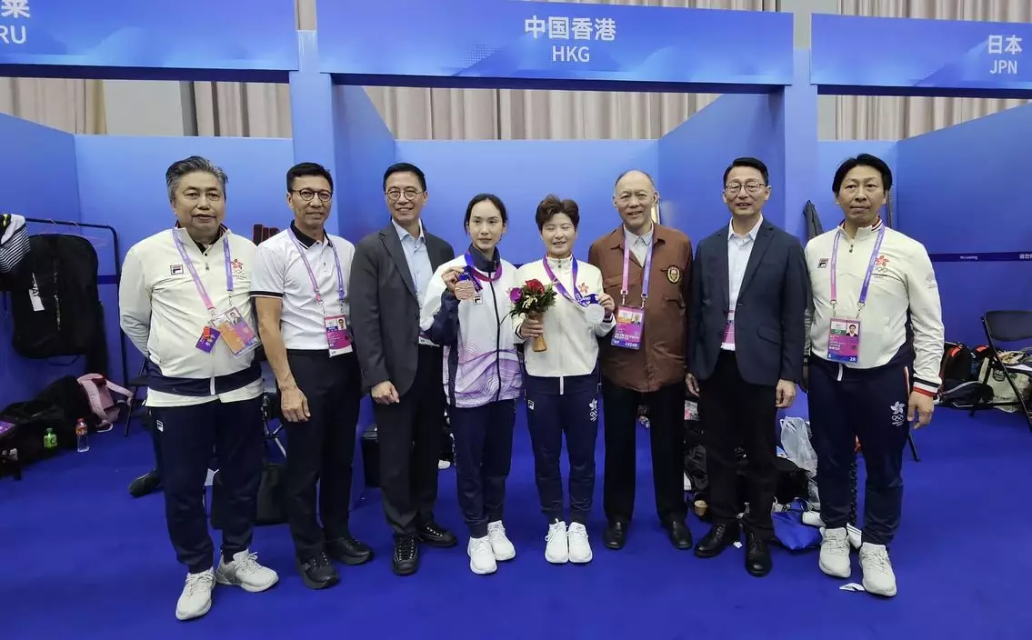 港隊25日在杭州亞運暫增添三面獎牌。正在杭州的文化體育及旅遊局局長楊潤雄表示恭賀。