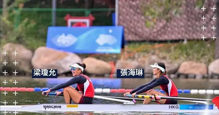 張海琳和梁瓊允在女子雙人單槳無舵手項目摘銀。(香港體育學院FB圖片)