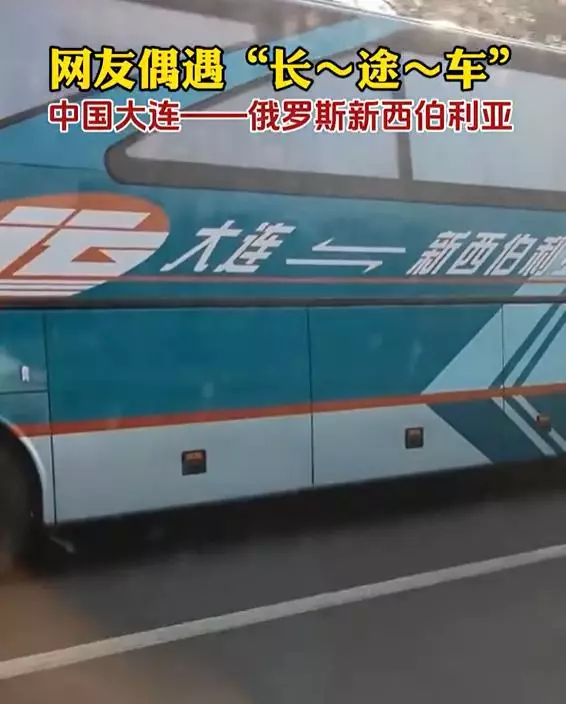 內地一名網友目擊,高速公路上一輛長途巴士正在疾駛,特別的是車身印有「大連——新西伯利亞」的字樣,隨即拍下來分享到網路上,引發討論。
