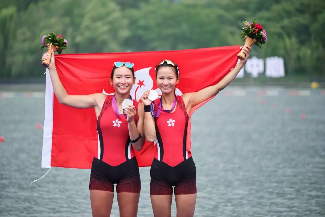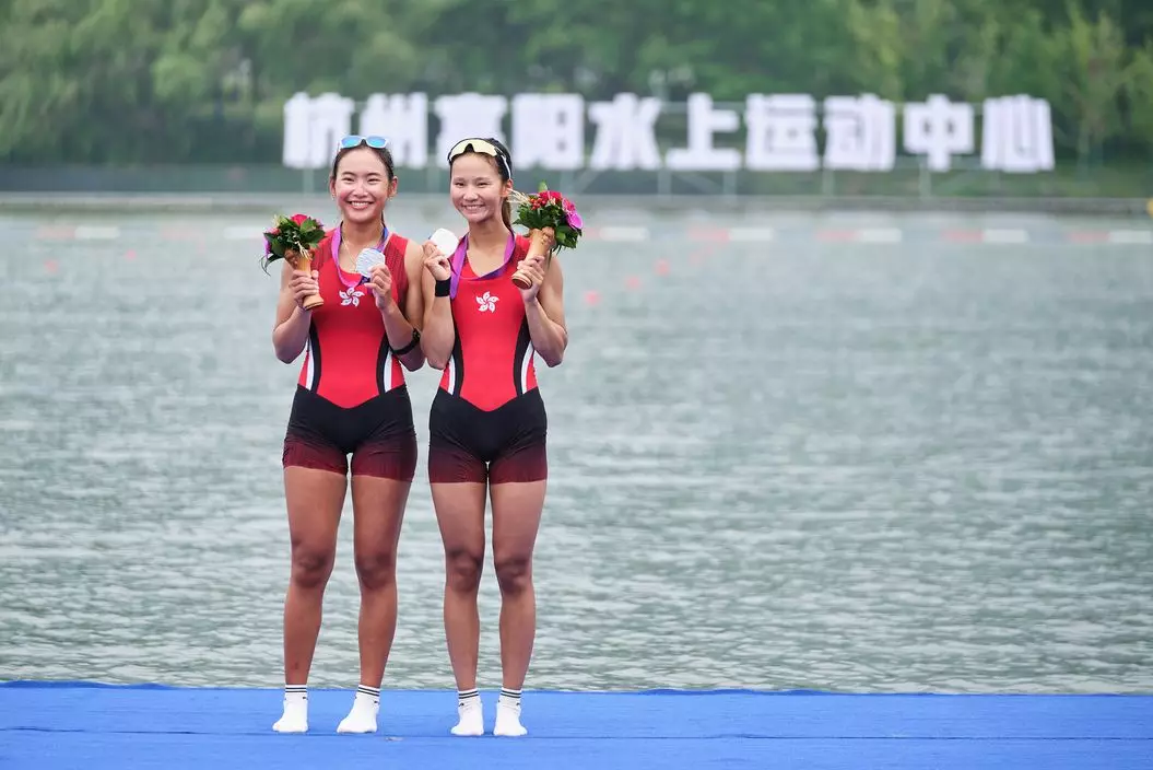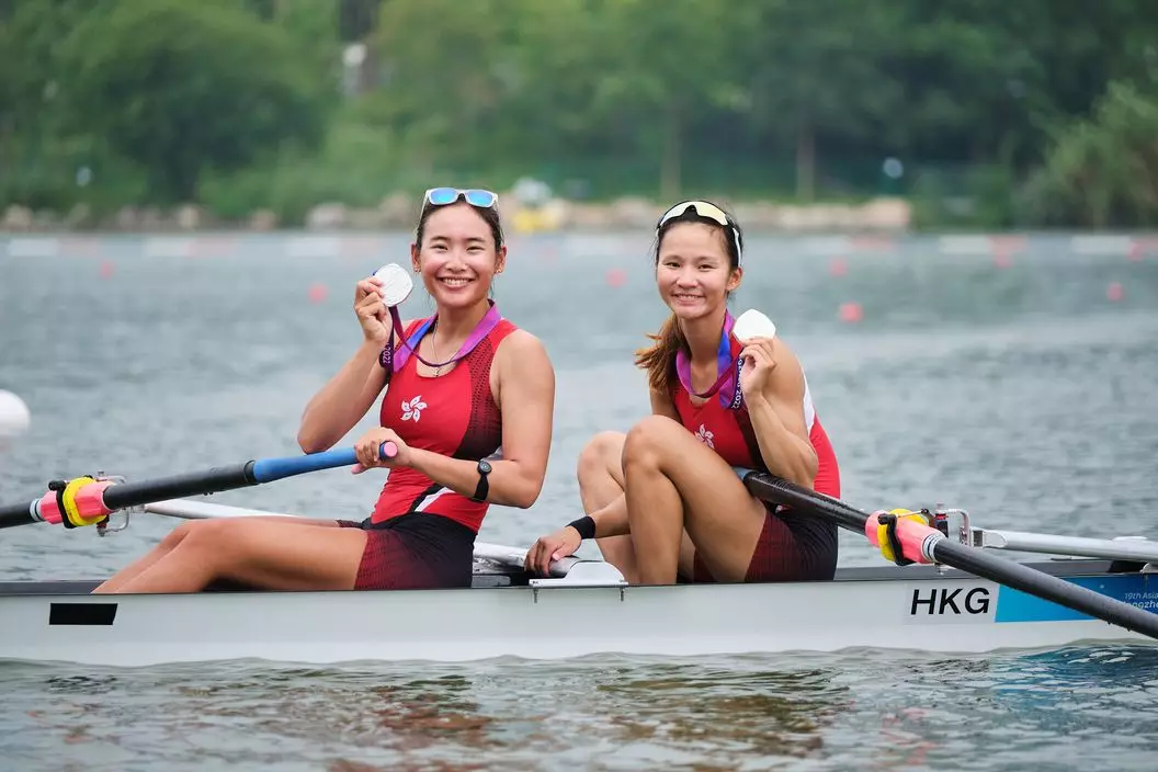 杭州亞運女子雙人單槳無舵艇項目,港隊組合張海琳、梁瓊允取得銀牌。