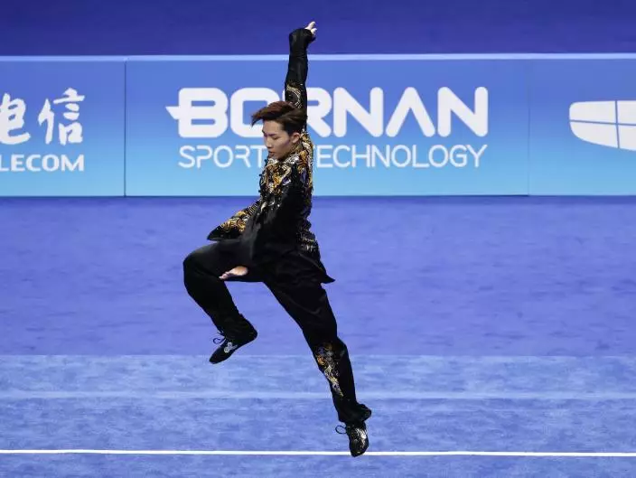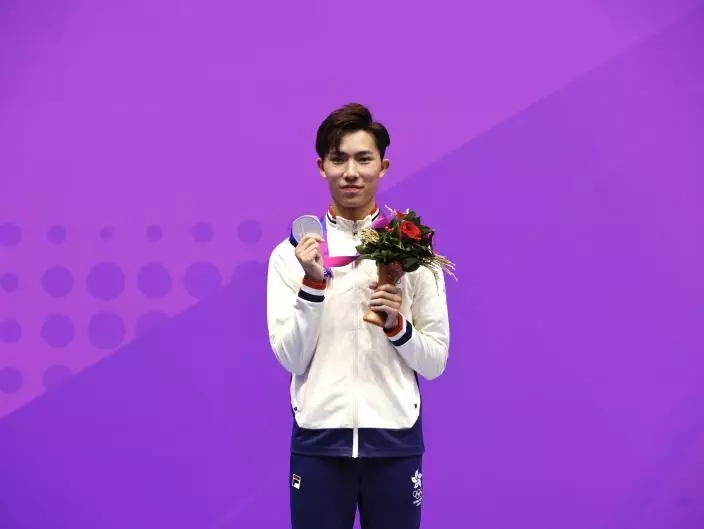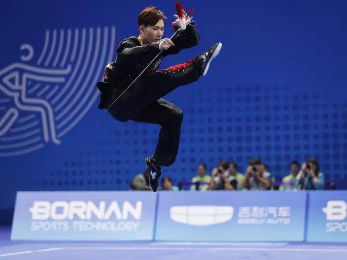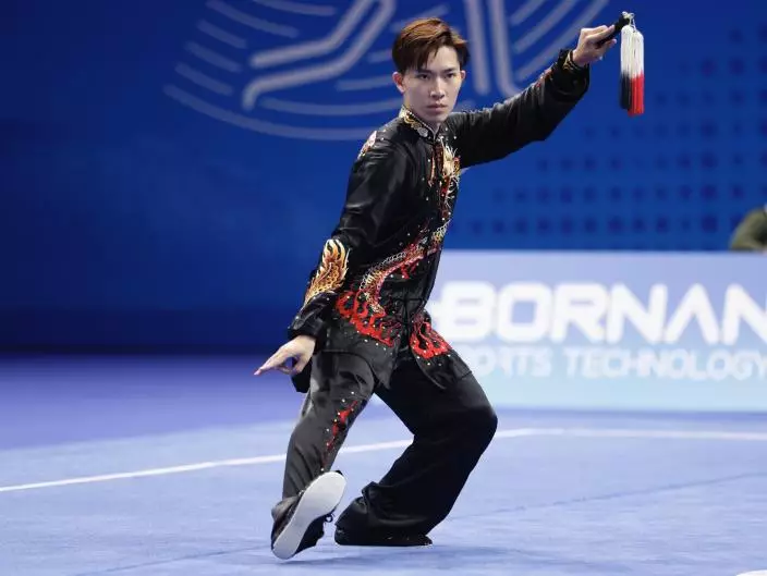 港隊許得恩於亞運男子太極拳太極劍全能項目奪銀。(相片由港協暨奧委會提供)