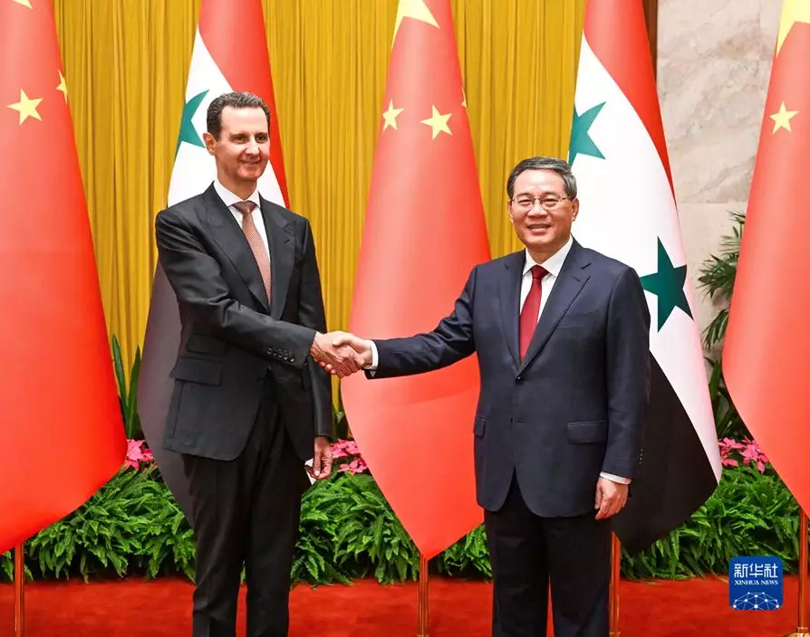 國務院總理李強與到訪的敘利亞總統巴沙爾會面。