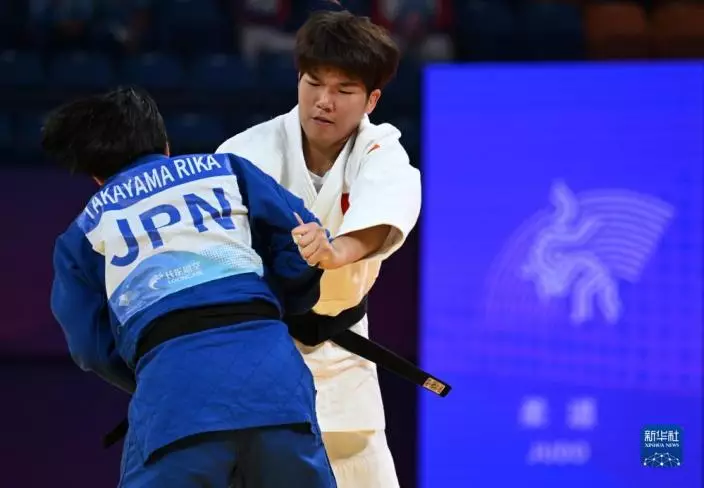 柔道女子78公斤級決賽, 國家隊馬振昭奪金牌。新華網圖片