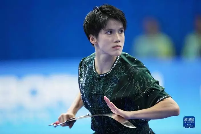 武術女子南刀決賽, 國家隊陳惠穎奪金牌。新華網圖片