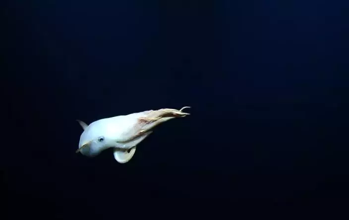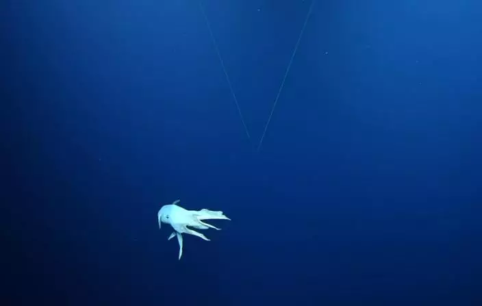 美國一支海洋研究團隊在深海意外發現一隻極其罕見、被暱稱為「小飛象」(Dumbo)的章魚,