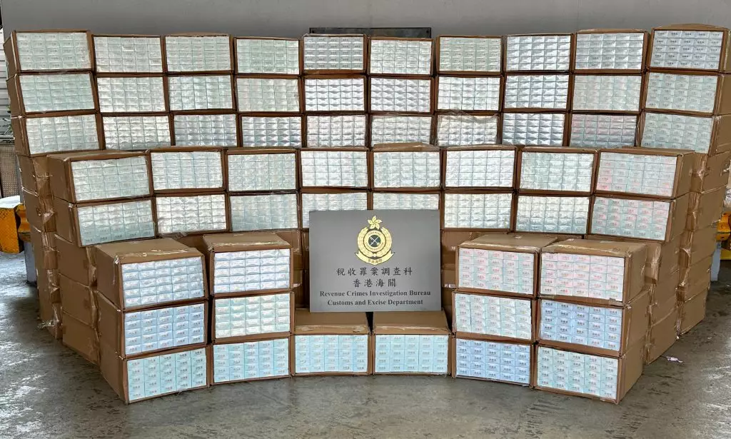 海關過去一星期在葵涌海關大樓驗貨場破獲兩宗走私香煙案,檢獲共約1500萬支懷疑私煙,估計市值共約5400萬元,應課稅值共約3600萬元。