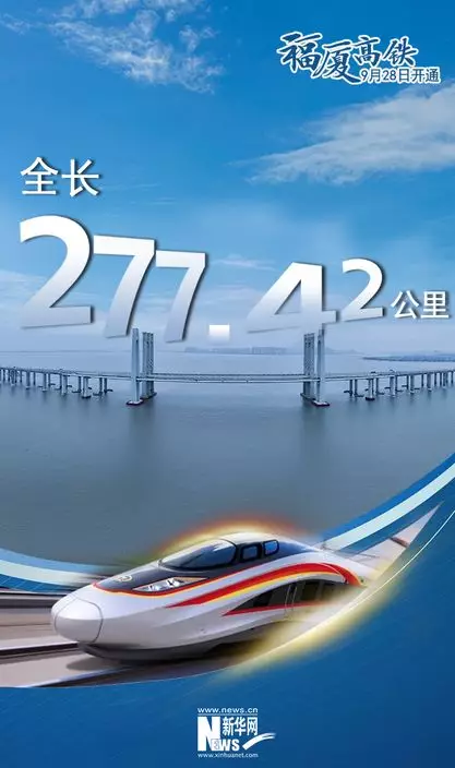 報道說,福廈高鐵全長277公里,時速達350公里,是目前中國運行時速最快的跨海高鐵。從福州到廈門只需約一小時,比之前的福廈鐵路動車縮短一個多小時。