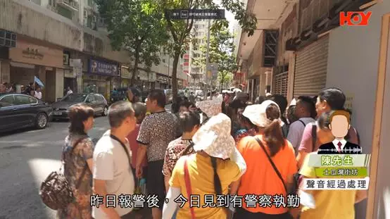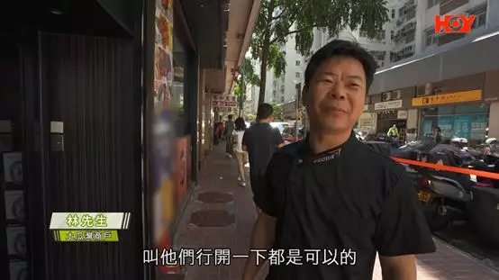另一土瓜灣街坊陳先生亦表示,人滿為患問題影響到他連出入屋企大廈門口都有困難;亦指出之前有警察維持秩序,但現在要報警,隔日才看到警察執勤 。(《一線搜查》影片截圖)