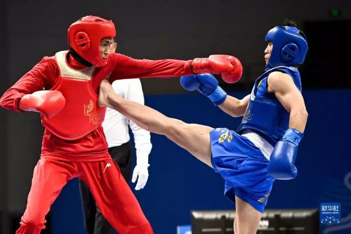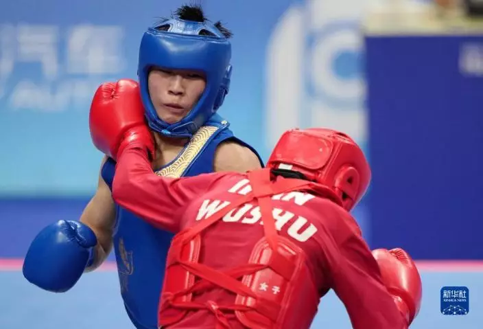 國家隊李玥瑤奪武術散打女子52公斤級決賽金牌。新華網圖片