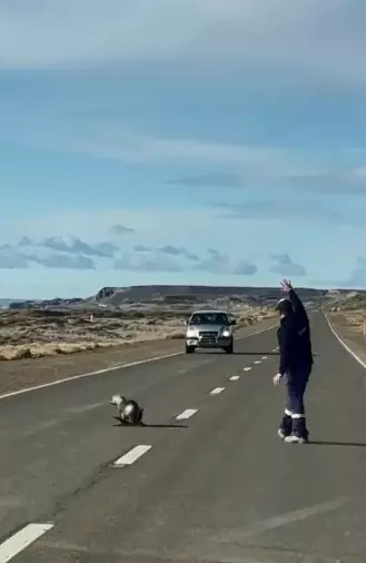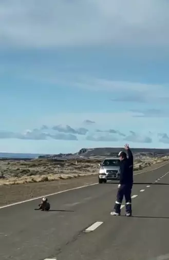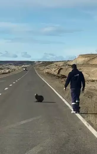 En viaje Conodoro a Caleta Olivia en ruta 3 pude ser testigo de ese heroe sin capa que salvo al pequeño lobito perdido 👏👏👏 pic.twitter.com/W7t4A8SihZ