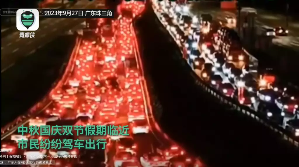 今天是中秋節,也是中秋國慶長假第一天,多地出現嚴重擁堵。有網友表示,平常兩個半小時的車程,現在10小時都未必能到。據悉,27日晚就已經有大批市民動身,出廣東的高速公路已經開始大堵車,有市民提前三天動身,但仍被堵在路上。