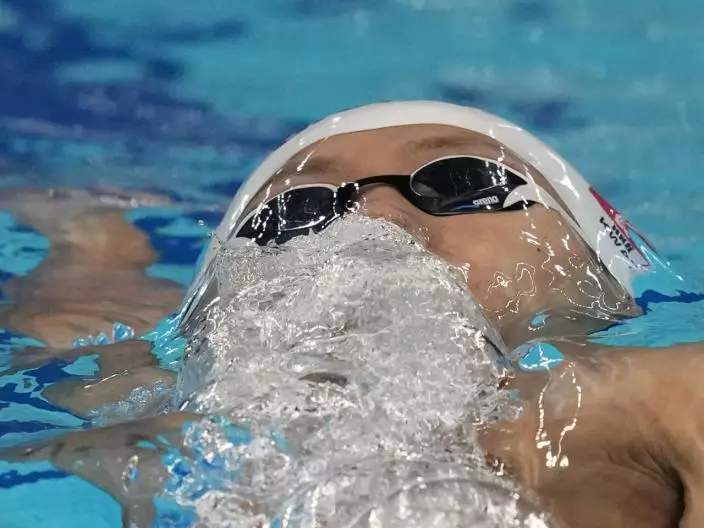 男子200米背泳,關鵬以2分02秒58,排小組第二,晉級今晚的決賽。AP圖片
