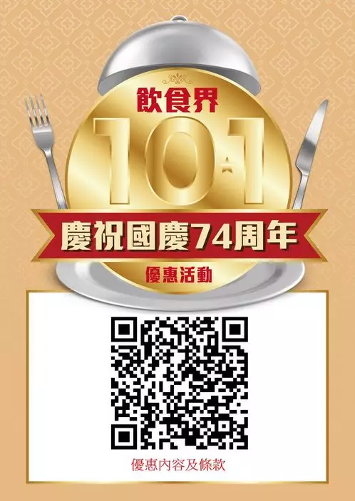 為慶祝中華人民共和國成立 74 周年,香港飲食業聯合總會、現代管理(飲食)專業協會、香港餐務管理協會、香港餐飲聯業協會、稻苗飲食專業學會、香港日本食品及料理業協會、香港日本料理店協會及優質旅遊服務協會再次聯合推出「飲食界慶祝國慶 74 周年優惠活動」,與市民共享喜悅。而優惠不局限於10月1日,其中800多間餐廳會延續優惠至10月2日,部分更在9月30日搶先推出優惠。