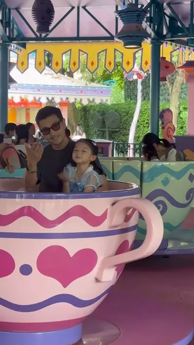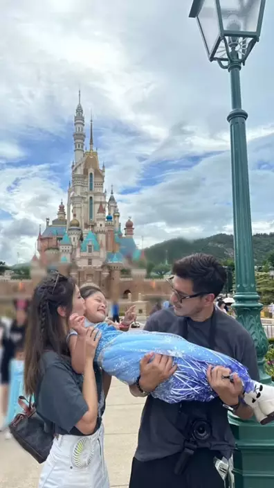 單文柔一家三口遊主題樂園 被老公陳展鵬「公主抱」險洩春光