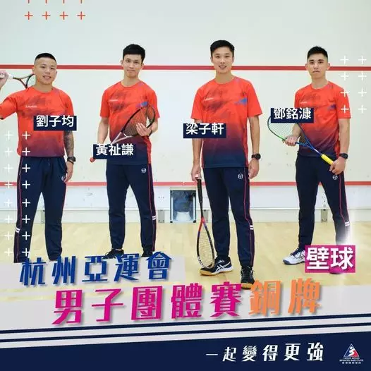 杭州亞運壁球項目男子團體賽,港隊4強不敵巴基斯坦,得到一面銅牌。