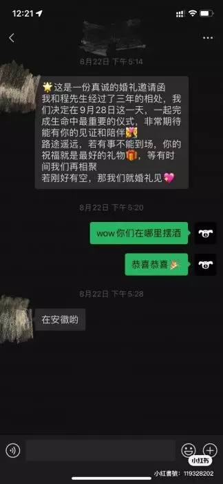 日前,內地一名女子在小紅書上發文稱,大學時期的其中一名室友在日前結婚,並通過微信向她發來了婚禮邀請,邀請內容相當正式和禮貌,也沒有強迫來賓必須贈送紅包,「若有事不能到場,你的祝福就是最好的禮物,等有時間我們再相聚;若剛好有空,那我們就婚禮見」,女子看完後,考慮到和新娘並不算熟絡,因此也沒有贈送紅包的打算,僅是禮貌地回了句恭喜。