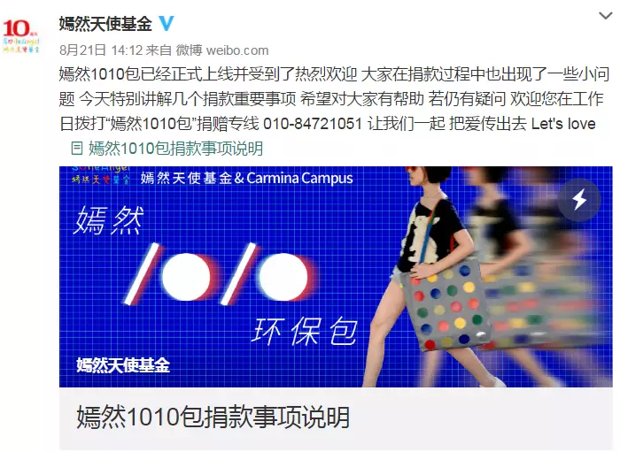 王菲與前夫李亞鵬當年為了女兒李嫣而成立了「嫣然天使基金」,幫助內地患兔唇的孩子。近日為慶祝基金會成立十周年,推出了慈善手袋「嫣然1010環保包」,王菲、李嫣及竇靖童三母女難得現身,同為慈善手袋作宣傳。