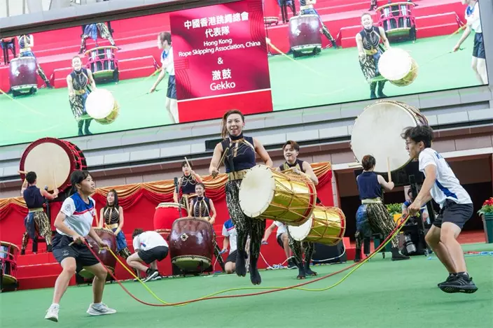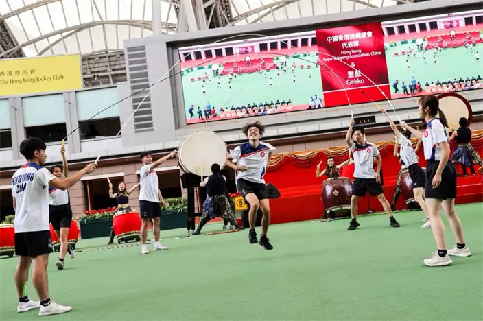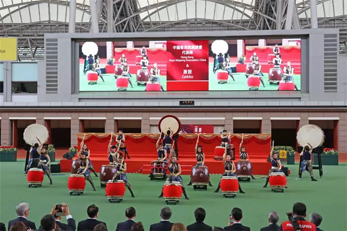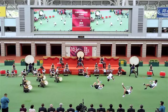 中國香港跳繩總會中國香港代表隊表演大型花式跳繩,及本地著名敲擊樂團「激鼓」演奏,在國慶賽馬日開幕儀式上演出。