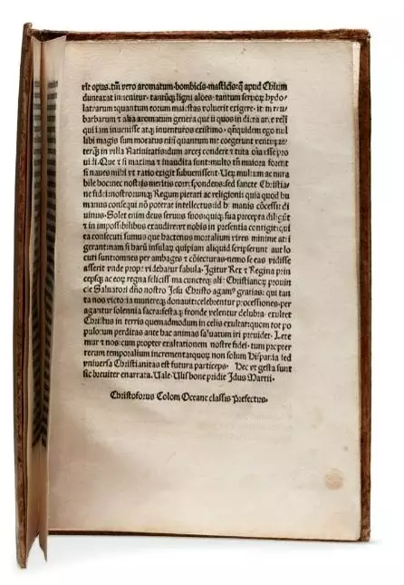 他在信裡描述島嶼擁有豐富的天然資源,當地人對外人毫無戒心且慷慨,像傻瓜一樣。這封信件先前由瑞士私人收藏家族保存將近1個世紀,佳士得認為這是哥倫布信件最早的印刷版本,歷史學家則將此信視為歐洲對外殖民的開始。