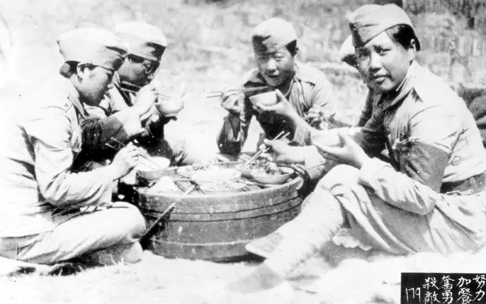 1932年一二八事變後在前線用餐的女兵 (網上圖片)