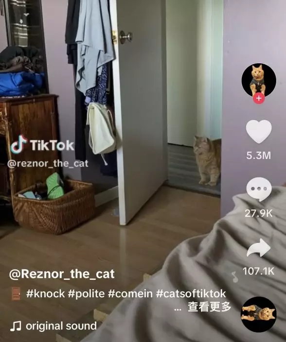 日前,國外一名飼主@reznor_the_cat在TikTok上分享了愛貓超有禮貌的舉動,愛貓是一隻名為Reznor的橘貓,當天牠來到飼主房間門口,看見飼主房門沒有關上,但牠沒有選擇直接闖入,反而是站在門口停留了一會,隨後只見牠敲了2下門示意飼主,待飼主同意進入後,牠才慢悠悠走進房內。