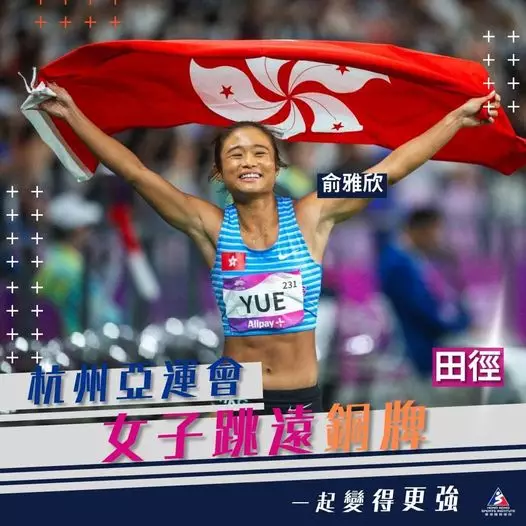 港隊於杭州亞運奪得今屆田徑項目首面獎牌,俞雅欣於女子跳遠項目,以破香港紀錄的成績奪得銅牌。