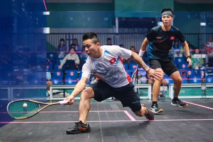 杭州亞運壁球男單8強,港隊梁子軒局數3:0擊敗隊友劉子均,晉級四強,穩奪一面獎牌。