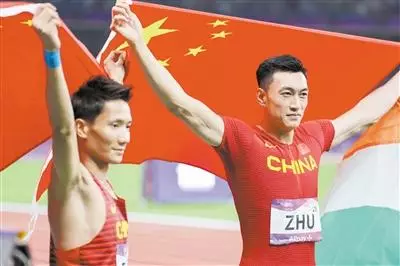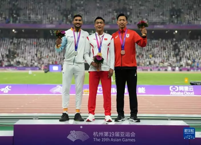 男子三級跳遠決賽,國家隊的朱亞明及方耀慶分獲金銀牌。