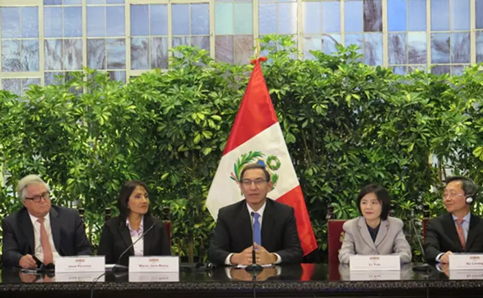 秘魯前總統比斯卡拉2019年5月出席中遠海運港口錢凱港項目正式交割暨項目公司揭牌儀式。圖片來源:中國駐秘魯大使館