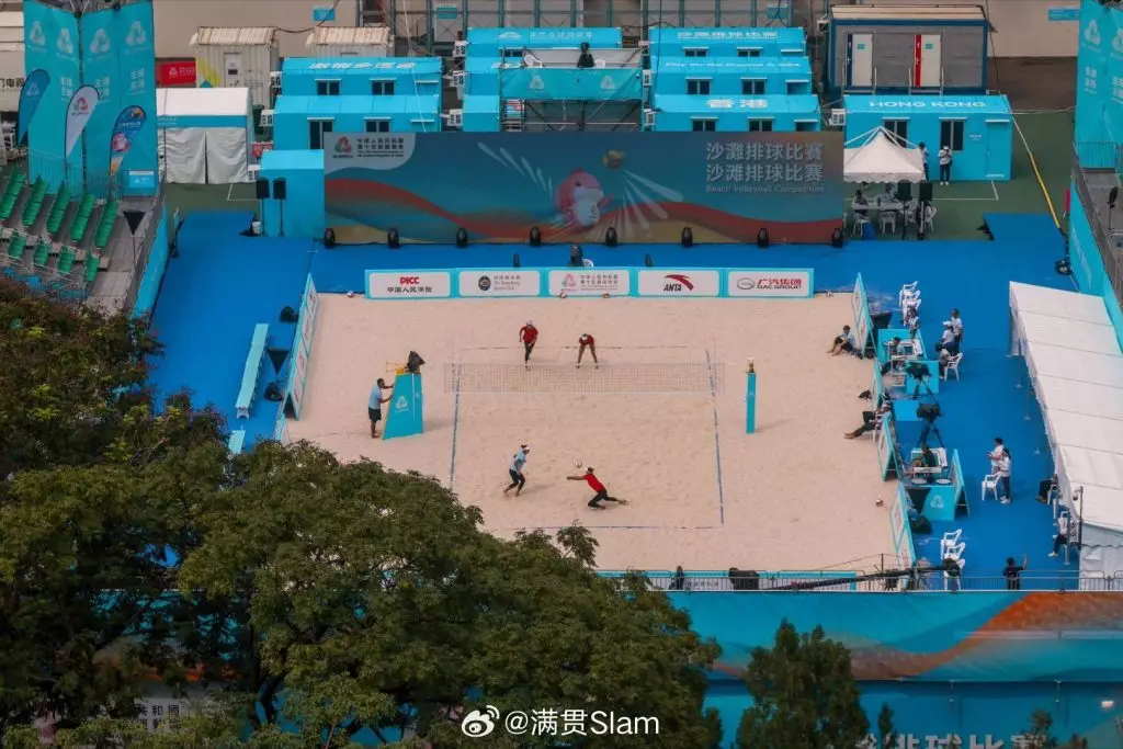 沙灘排球賽展開,運動員稱場地設施配套完善。微博圖片