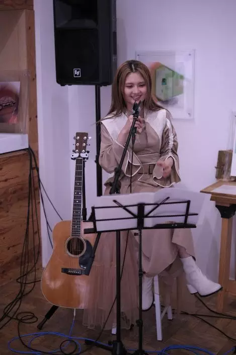 展覽其中一日,黃妍更舉行了迷你音樂會。