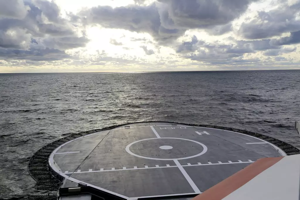 芬蘭邊防衛隊的近海船隻於 10 月 10 日在芬蘭灣受損的天然氣管道附近進行海上巡邏。(AP圖片)