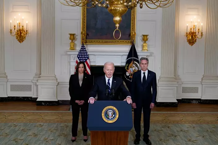 10月10日,美國總統拜登在白宮發表講話,承諾將向以色列提供軍事援助。AP圖片