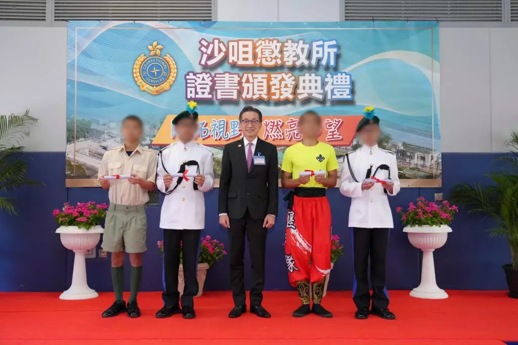 懲教署轄下沙咀懲教所13日舉行證書頒發典禮,頒發證書予青少年在囚人士,以肯定他們在學業及職業訓練考試上付出的努力及取得的成果。