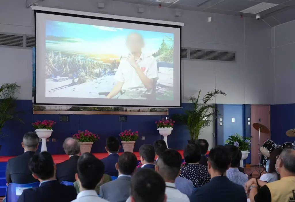 出席典禮的人士觀看一條由青少年在囚人士製作的短片。政府新聞處圖片