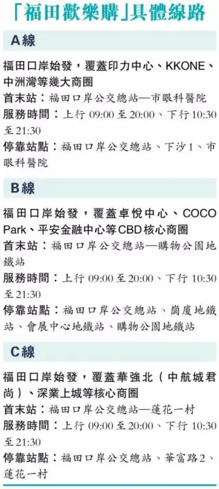 「福田歡樂購」免費接駁專線的3條路線。文匯報圖片