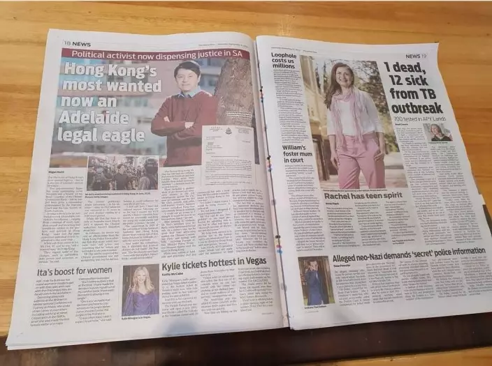 他早前展示澳洲報紙有關他的全版報道,表示「受寵若驚」,為此沾沾自喜。