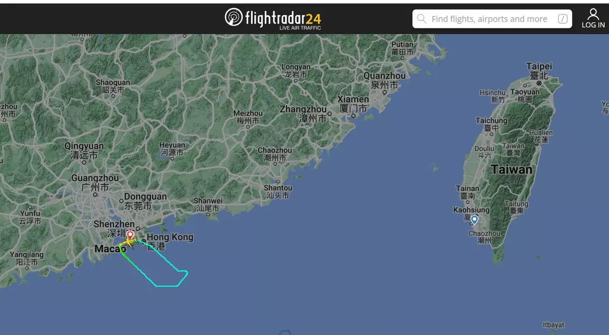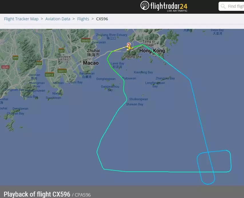 香港客運航機折返香港機場的路線圖。(flightradar24網頁截圖)