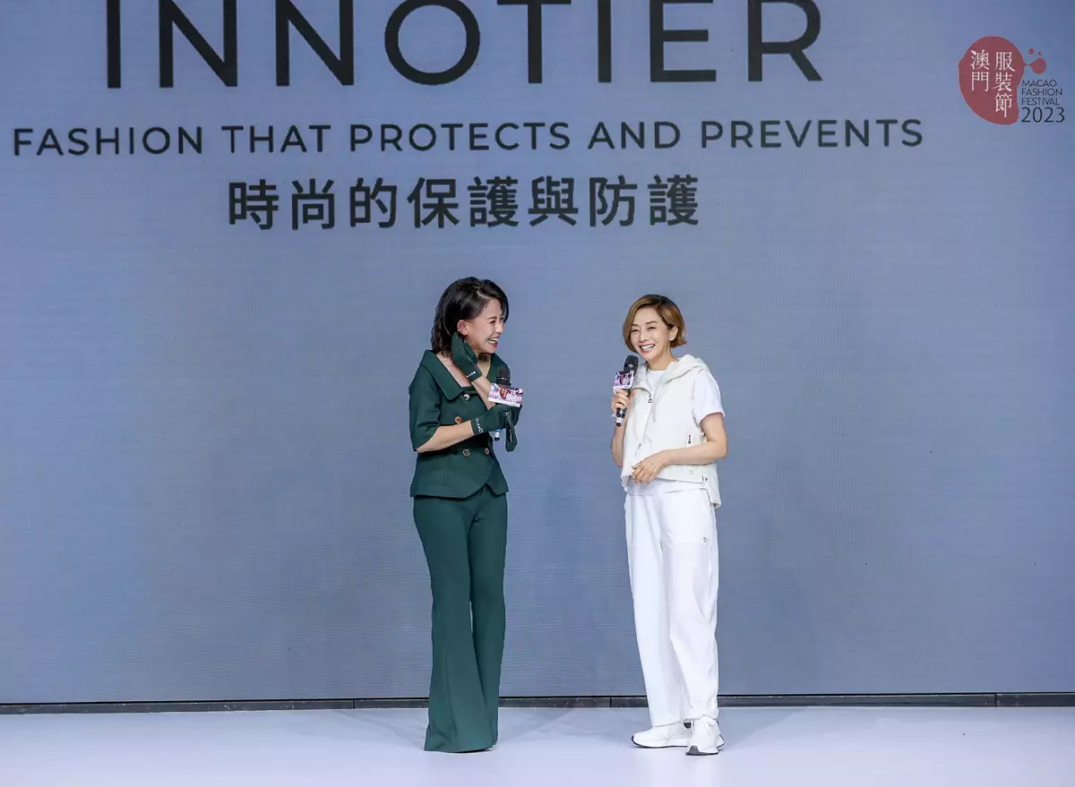 毛舜筠到澳門出席服裝節時裝騷,與INNOTIER創辦人林曉盈(Juliana)齊齊介紹全新可持續時尚防毒服飾系列。