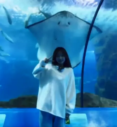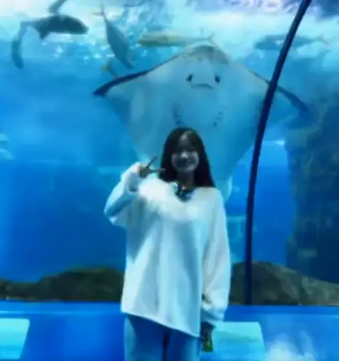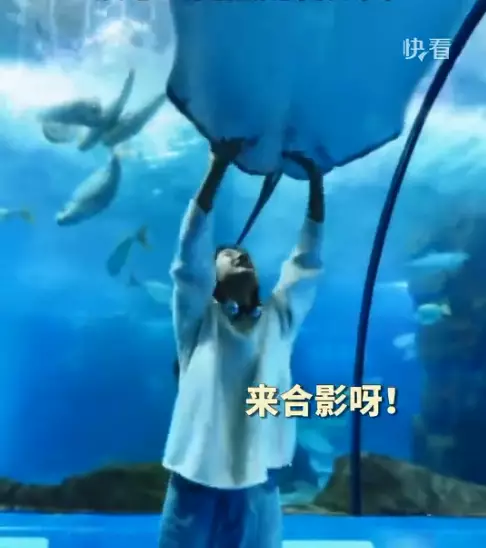 內地一女生在遊覽水族館時,竟成功和魔鬼魚「夢幻合照」,讓網友都都直呼「神奇」!