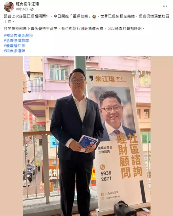 根據朱江瑋個人社交平台,他早於今年8月16日已設置街站向市民推銷整合強積金服務。