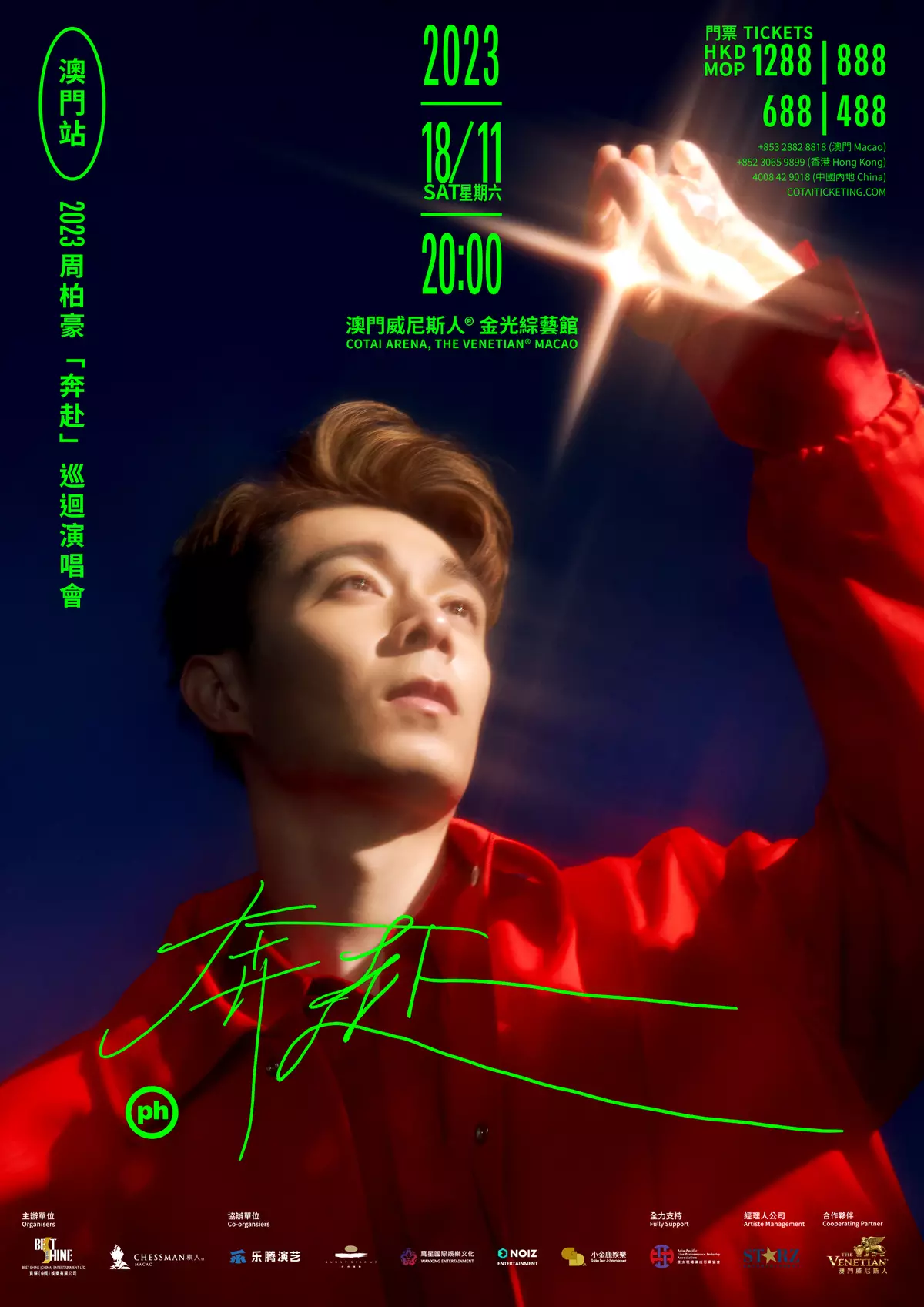 相隔六年,周柏豪Pakho重踏澳門舞台,於澳門威尼斯人金光綜藝館舉行,由寶輝娛樂及棋人娛樂合辦《2023周柏豪「奔赴」巡迴演唱會》澳門站。