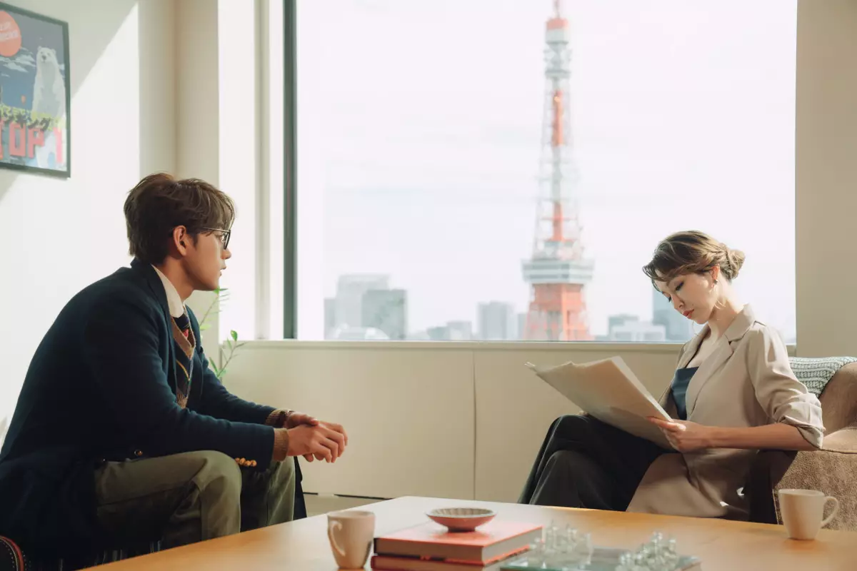 現年39歲的藤井莉娜,曾是日本雜誌首席模特兒,嘴角旁邊微微對稱的兩顆「美人痣」,既性感又具個人特色,是許多人心目中的完美女神,雖然已榮升母親,但外貌與身形保養得宜,難怪Jeffrey覺得今次能與女神合作拍MV成就解鎖!他說:「我一直對畫畫充滿興趣,自覺本身有點藝術氣息,所以今次在MV中飾演漫畫家,覺得很貼切呢,哈哈!最驚喜是可以看到兩位日本藝人,小時候經常在時裝雜誌看到藤井莉娜,今次看到真人,感覺很有趣,雖然大家語言不通,但一拍即合,有種『神交』的感覺,意思是眼神交流,所以合作愉快,獲益良多!」