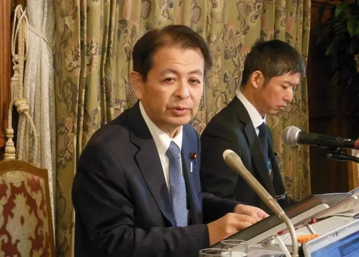 日本農林水產大臣宮下一郎在內閣會議後的記者會上。